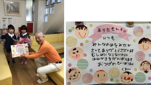 勤労感謝の日のプレゼントいただきました。 2019-12-04 最終更新日時 : 2026-02-25 staff 園医をしているお告げの聖母保育園の園児が勤労感謝の日で花束と手作りカードを持ってきてくれました。