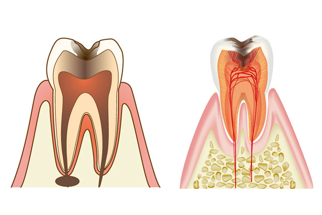 C3とは、歯髄(骨の骨髄に相当)まで、進行した状態で、歯髄をとる治療になります。